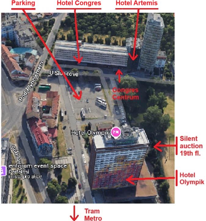 „Silent auction“ in hotel Olympik (Olymp Lounge) on the 19th floor with panoramatic view of Prague.